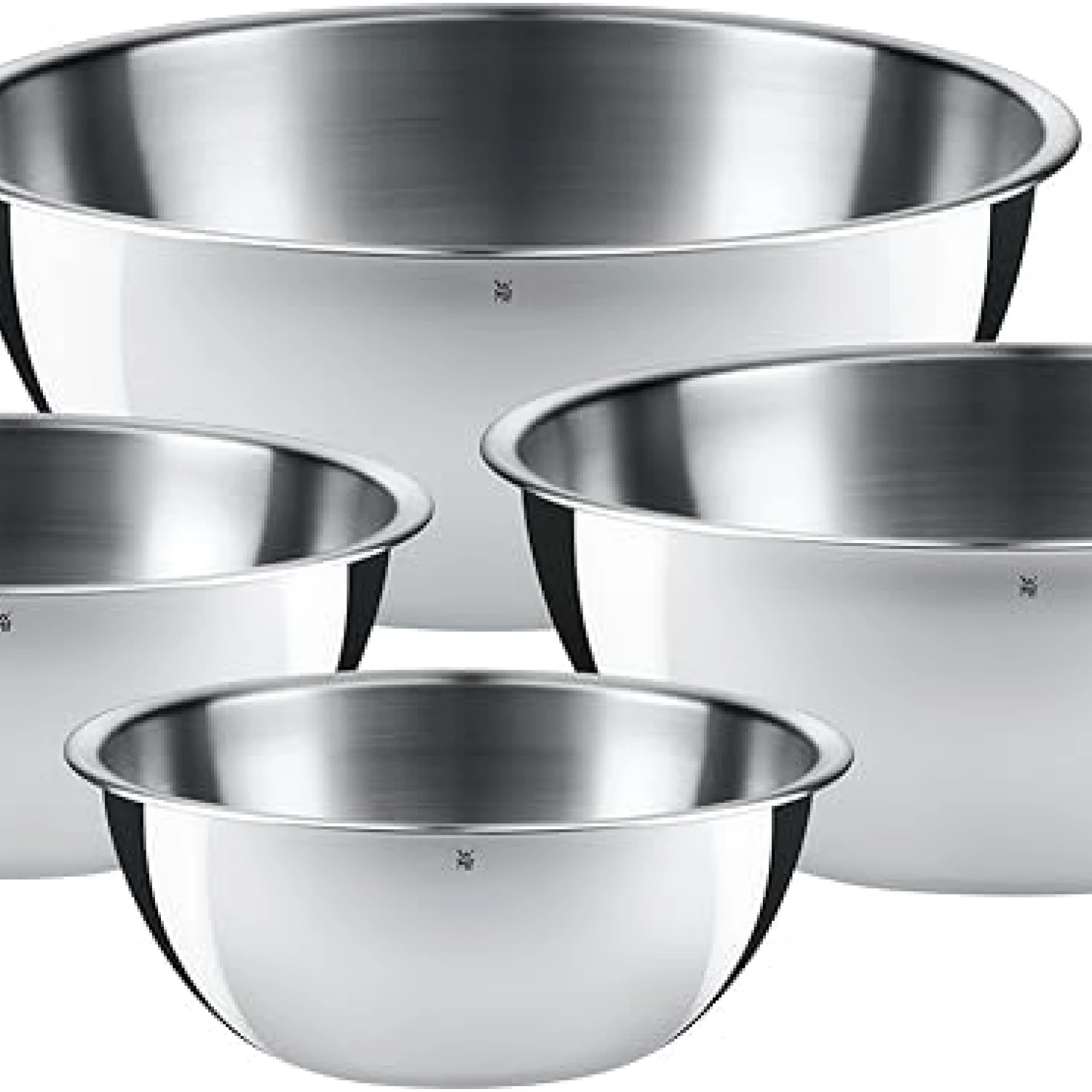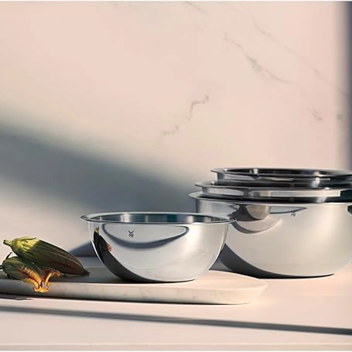 کاسه 4 عددی دبلیو ام اف مدل WMF Kitchen bowl-set 4 pieces GOURMET یک سرویس کامل از کاسه را برای شما فراهم می کند که فضای کمی را اشغال می کند . به همین دلیل است که WMF انواع کاسه های آشپزخانه برای مواد مختلف و روش های مختلف آماده سازی را ارائه می دهد . به عنوان مثال ، کاسه های دسته دار و حلقه ای ثابت برای زدن خامه یا تخم مرغ مناسب هستند . از طرف دیگر کاسه های بزرگ و پیازی آشپزخانه برای هم زدن ایده آل هستند . از کاسه های دسته دار برای تهیه با مخلوط کن دستی استفاده می شود . علاوه بر این ، WMF کاسه هایی با لبه ریخته گری شده ارائه می دهد که امکان جابجایی آسان بدون ریختن مایعات را فراهم می کند . کاسههای آشپزخانه WMF از Cromargan® فولاد ضد زنگ 18/10 ساخته شدهاند ، مادهای که بسیار پایدار است و در صورت استفاده ، به عنوان مثال با میکسر ، غیرقابل تخریب باقی میماند . همه کاسه ها به راحتی تمیز می شوند ، قابل شستشو در ماشین ظرفشویی هستند و بنابراین بسیار بهداشتی هستند .