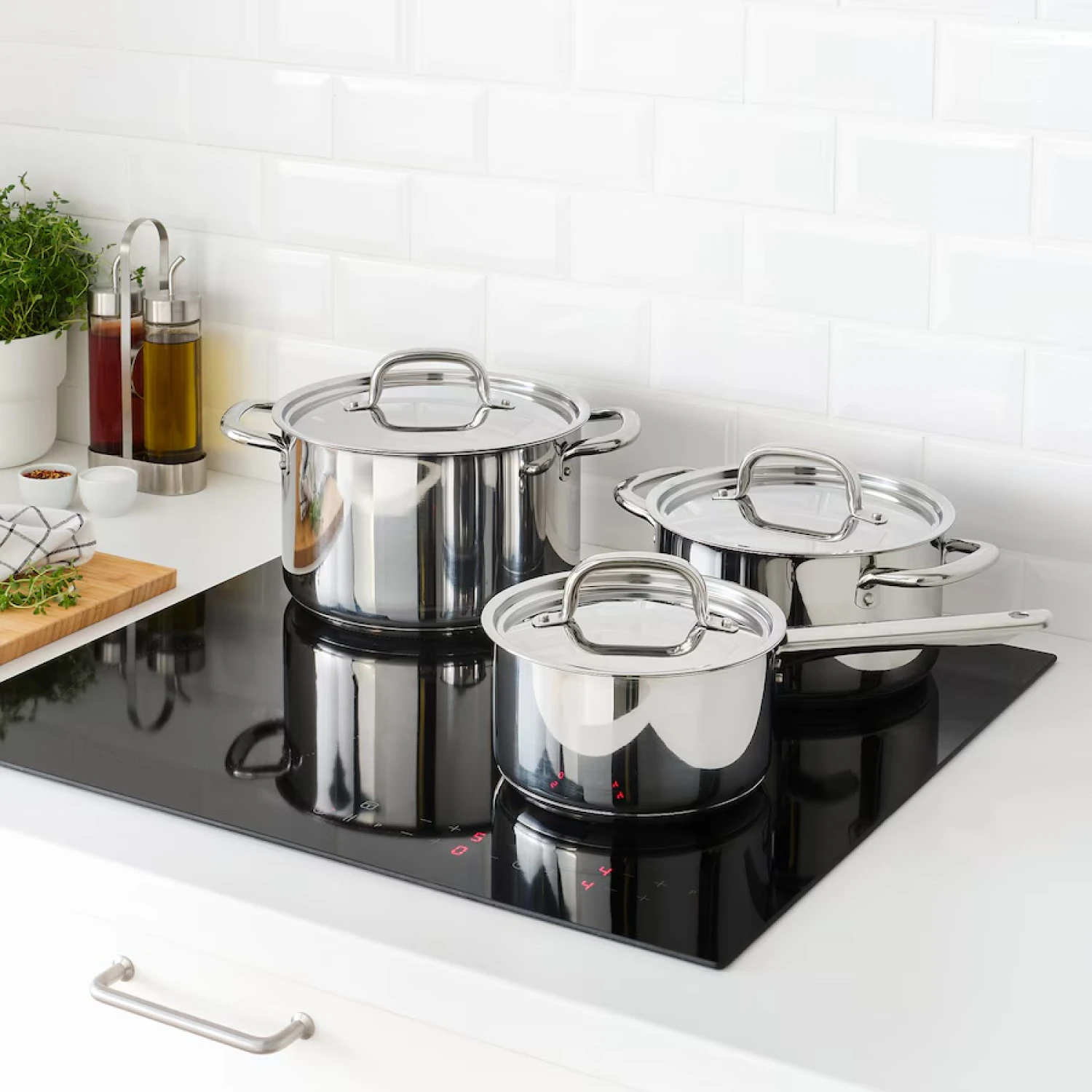 ست ظروف آشپزی دارای طراحی تمیز و ساده است و استفاده از آن آسان است. استیل ضد زنگ و کف پهن باعث گرم شدن سریع آن می شود – و تنظیم دما بر اساس نوع غذایی که می پزید آسان تر است. روی همه انواع اجاق گاز از جمله اجاق گاز القایی به خوبی کار می کند. دسته های قابلمه برای کاهش انتقال حرارت طراحی شده اند.