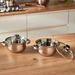 این سرویس قابلمه دو تکه، انتخابی کلاسیک و از ملزومات اساسی آشپزخانه شماست. این ظروف شیک و مدرن که از جنس استیل ضد زنگ و مناسب برای مواد غذایی ساخته شدهاند، با دربها و دستههای شفاف، دوام خوبی دارند. علاوه بر این، این سرویس برای شستشو در ماشین ظرفشویی نیز مناسب است.