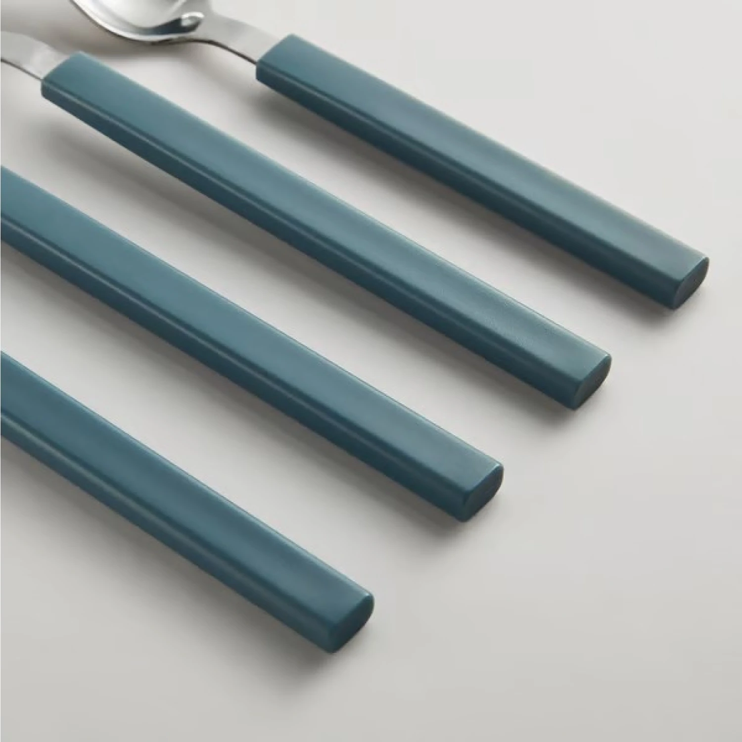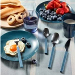 - به اطراف بشقاب رنگ اضافه کنید. این کارد و چنگال ممکن است شکل سادهای داشته باشد، اما با دستههای آبی، رنگ و لعاب زیبایی به میز میدهد. یک همراه عالی برای شام ─ برای وعدههای غذایی روزمره و مهمانیها.