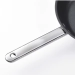 داخل تابه گرد است که هم زدن و هم زدن را آسان می کند.