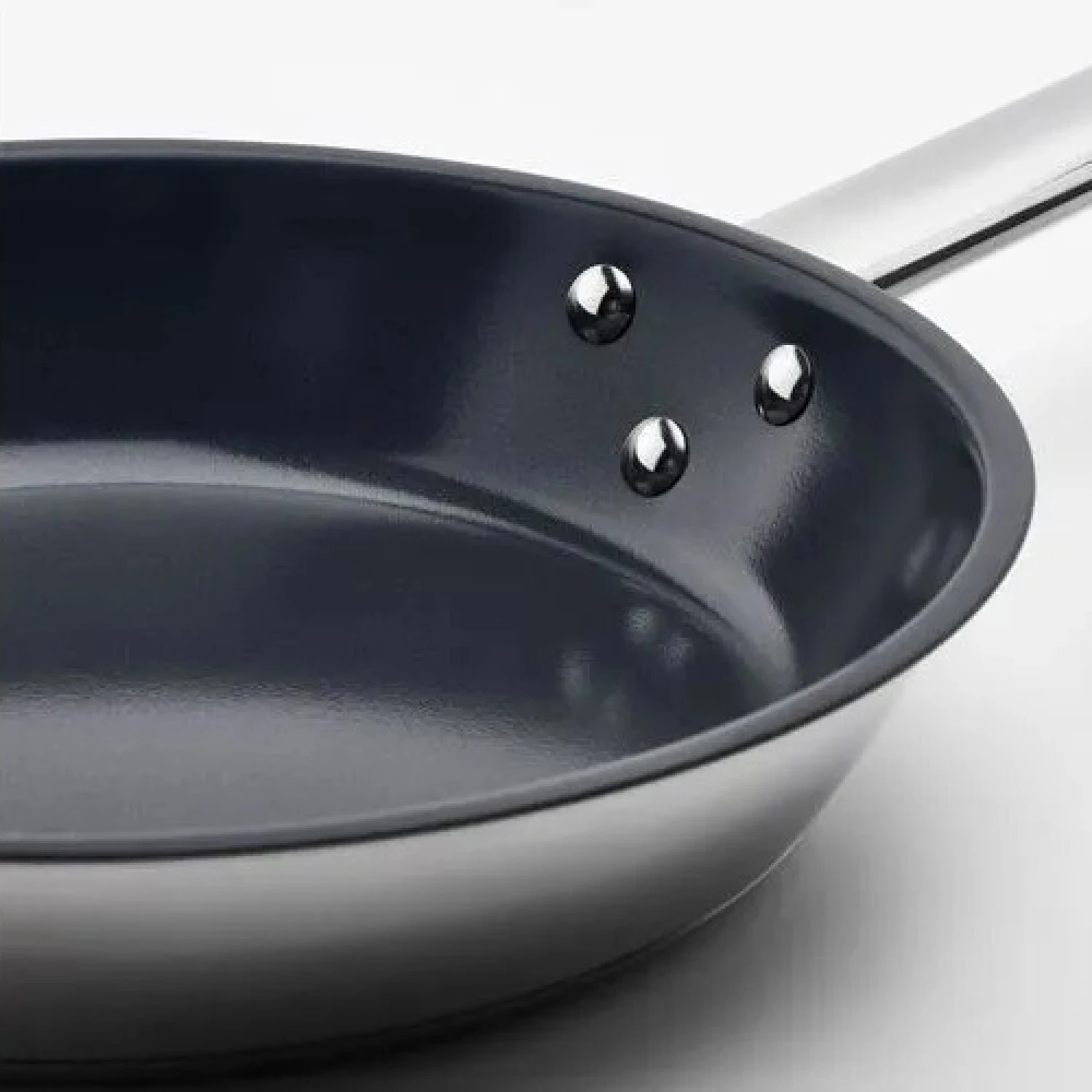 یک لایه آلومینیوم ضخیم بین دو لایه استنل استیل ، گرمای یکنواخت و کم مصرفی ایجاد می کند که خطر سوختن و چسبیدن غذا را کاهش می دهد.