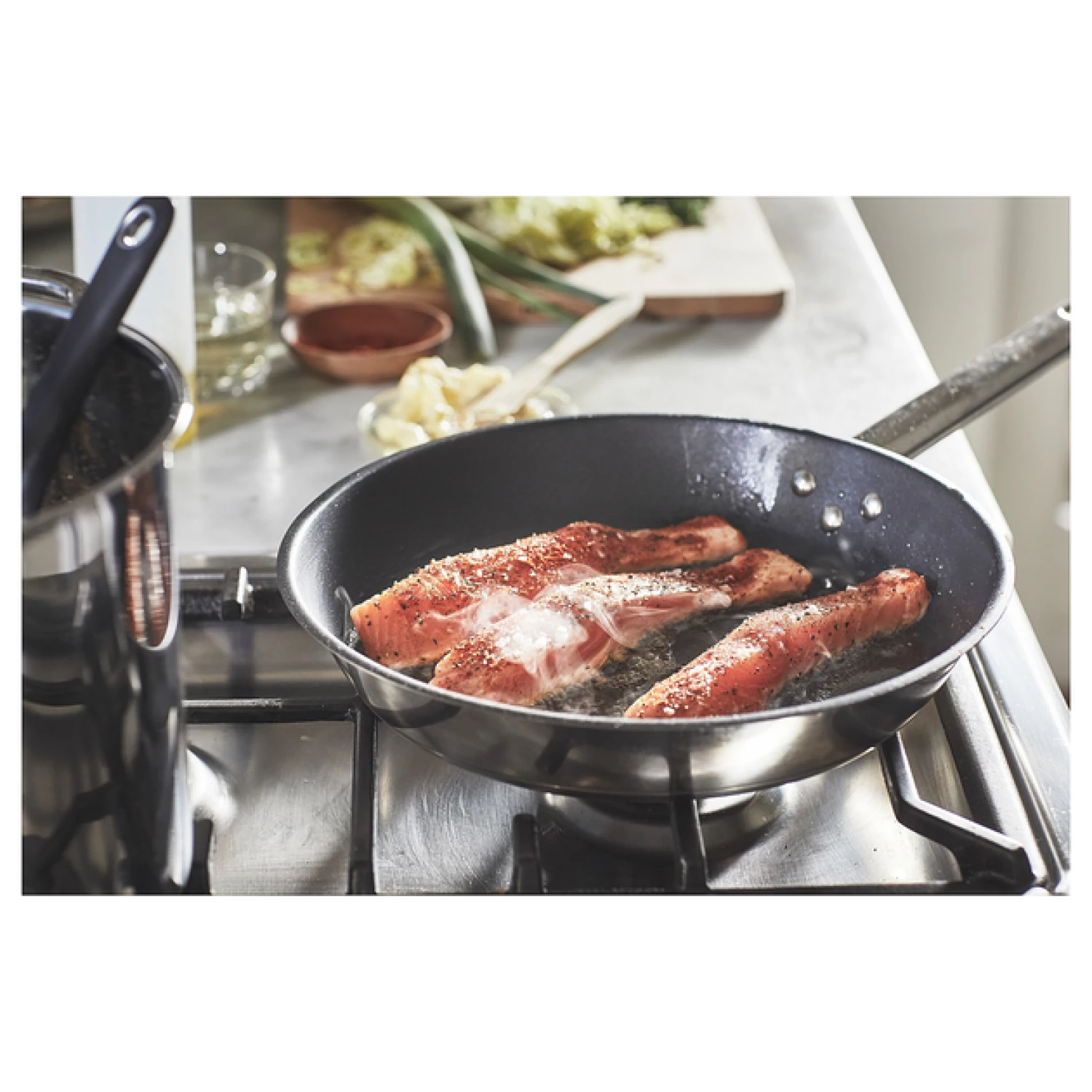 گرما در قسمت پایینی بالاتر است و سطح شیب دار این تابه ایکیا باعث می شوند غذا پایین بیاید.
