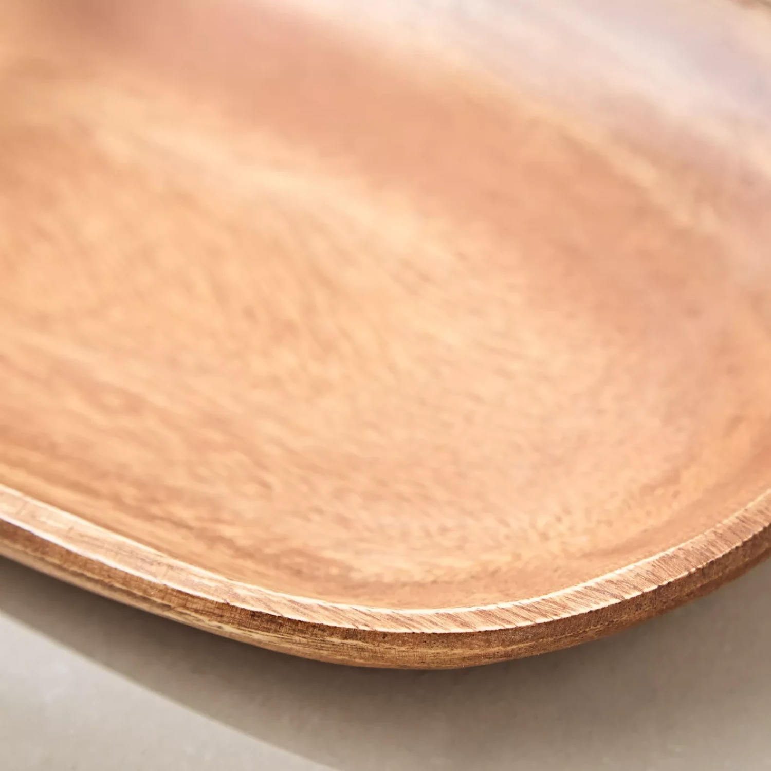 این سینی با داشتن شکل بیضی، از چوبی ساخته شده است که روکش طبیعی دارد. بادوام و شیک، قطعه ایمن برای غذا برای سرو چای و کاپ کیک ایده آل است. این سینی که یک افزودنی جذاب به کابینت ظروف سرو شما است، می توان آن را برای نگهداری با دست شست.