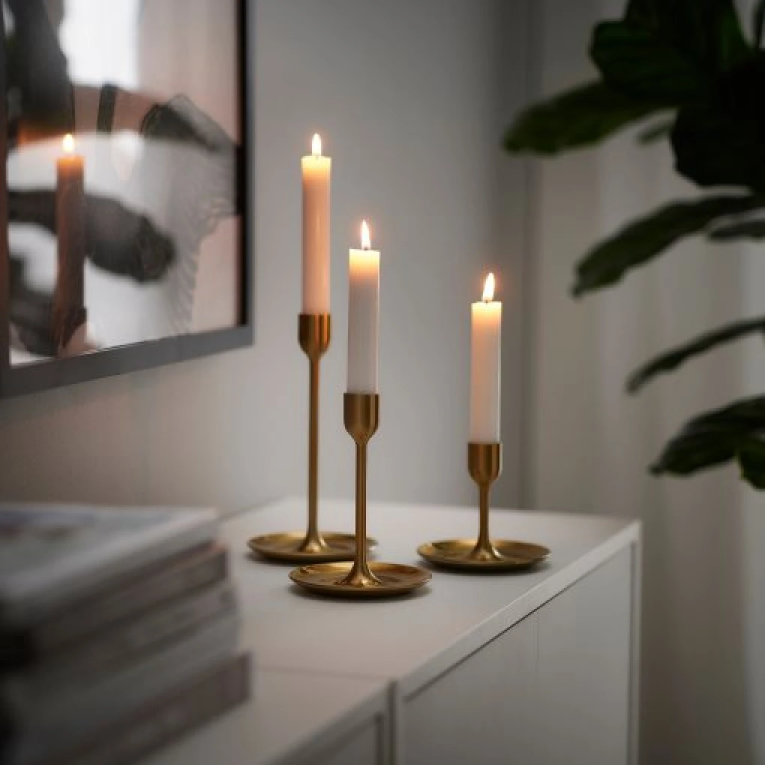 زندگی روزمره را کمی دنج تر کنید و حال و هوای خوبی در سطوح مختلف ایجاد کنید. FULLTALIG مجموعه ای با 3 شمعدان در ارتفاعات مختلف و دارای طراحی مدرن است که متناسب با بسیاری از خانه ها و سبک های داخلی است.
