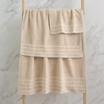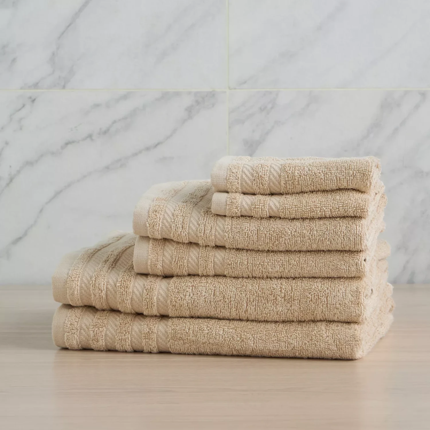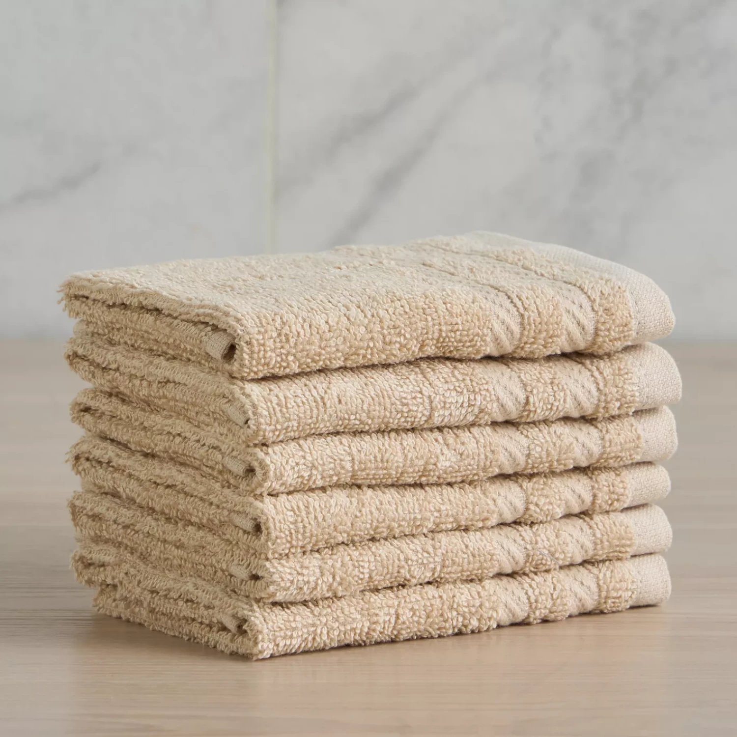 این حوله های نوک انگشتان را که برای جذب و نرمی استثنایی طراحی شده اند، کشف کنید. این حوله ها که از پنبه ساخته شده اند، حسی لوکس را ارائه می دهند و روی پوست ملایم هستند. این مجموعه شش حوله ظرافت عملی را برای حمام شما فراهم می کند و راحتی و کاربرد ماندگار را تضمین می کند. این حوله های همه کاره را با ملحفه های حمام همسان ست کنید تا زیبایی منسجم و ظریفی داشته باشید.