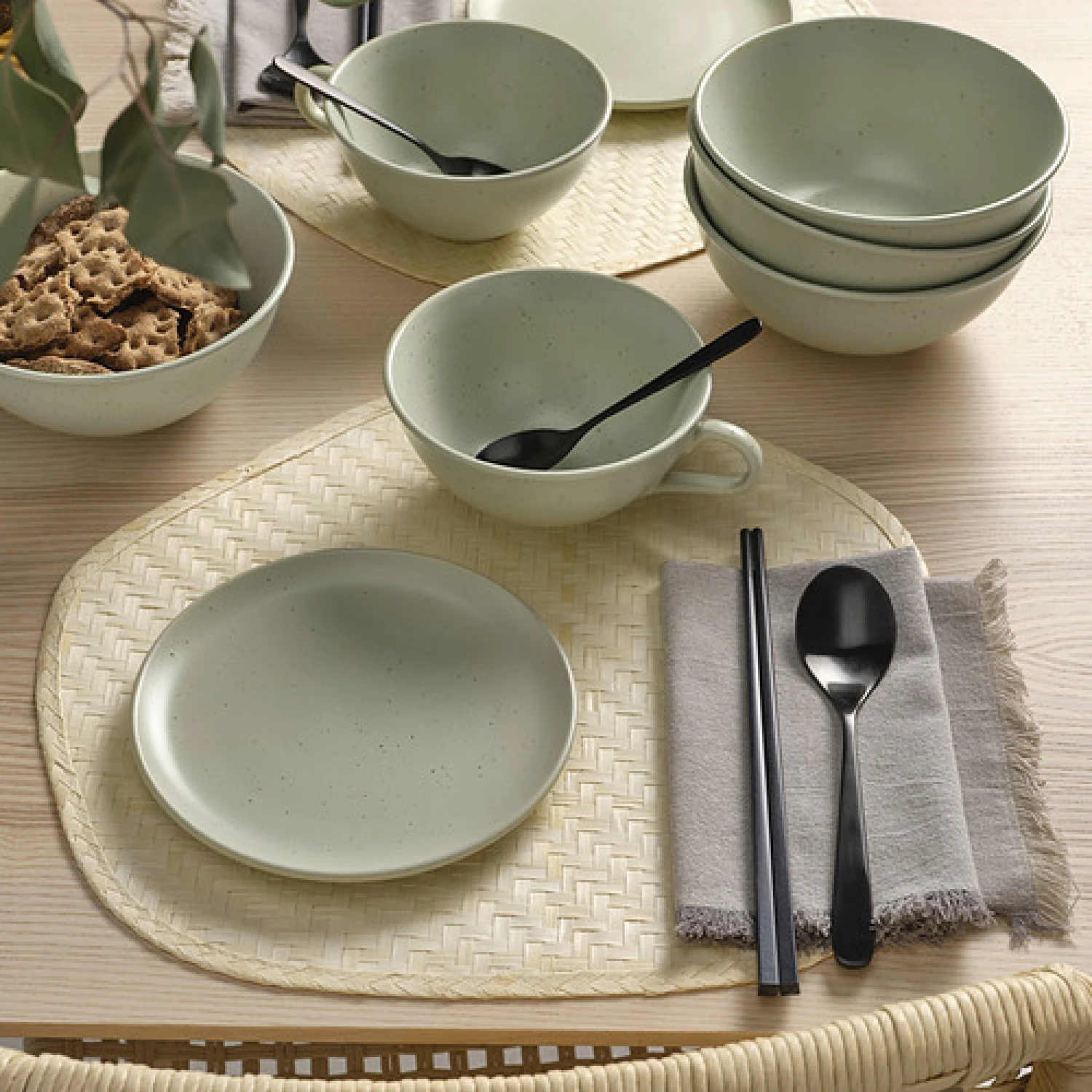 با ظروف غذاخوری MOSSMAL ، با هماهنگی کامل با اندازه کوچک ملاقات می شود. با الهام از طبیعت آرام نوردیک، روکش مات سبز روشن آن با لکه های ظریف، راحتی بی انتها را به هر وعده غذایی می بخشد.