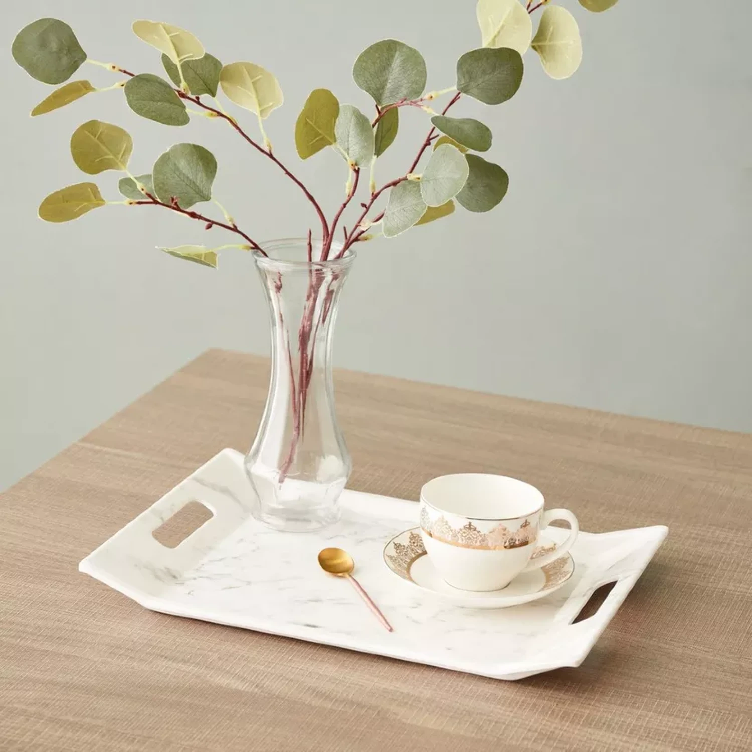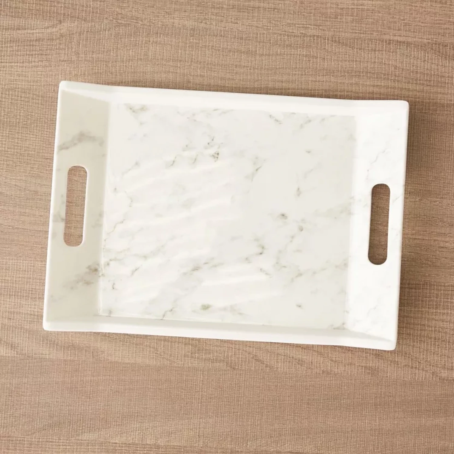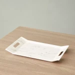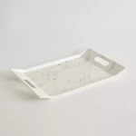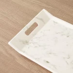 مهمانان خود را با چاشنی ها و نوشیدنی ها با این سینی چاپ مرمر سرو کنید. این سینی سرو با جزئیات برش کناری برای راحتی و از جنس ملامین ساخته شده، جادار و قابل شستشو در ماشین ظرفشویی است. این سینی که افزوده ای عالی به مجموعه شماست، می تواند گزینه ای برای هدیه دادن در حالت عادی نیز باشد.